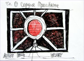 150. PRZENAJŚWIĘTSZE SERCEWieczór, wizyta w pustej kaplicy A w sercu matczyne słowa „Witaj dzieciaku, dawno czekałam tutaj cię znowu spotkam” Serce Jezusa i Serce Maryi Co za niezwykle spotkania... Najpierw Nazaret, potem Betlejem, I wreszcie góra Kalwaria! Ja się z mą mamą widziałem w Korei Choć ona w Polsce cierpiała, Głos jej słyszałem w dalekiej Japonii Powoli umierała. Jest coś takiego jak w starej legendzie O małym Marcellino, Że się rozmawia z Bogiem dalekim I nagle ożywa drewno. | |